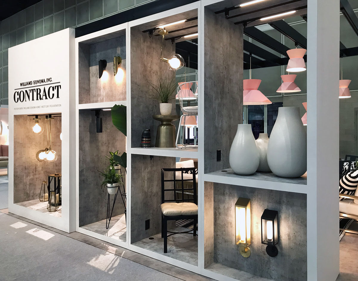 William's Sonoma partnered with Morley to design a trade show booth that will support their launch into the contract interiors market. The trade show booth needed to be a reflection of their new contract brand image and embody northwest modern design with clean lines and a modern finish palette. It also needed to have the ability to scale to different sized shows while showcasing a wide variety of products from their family of brands.